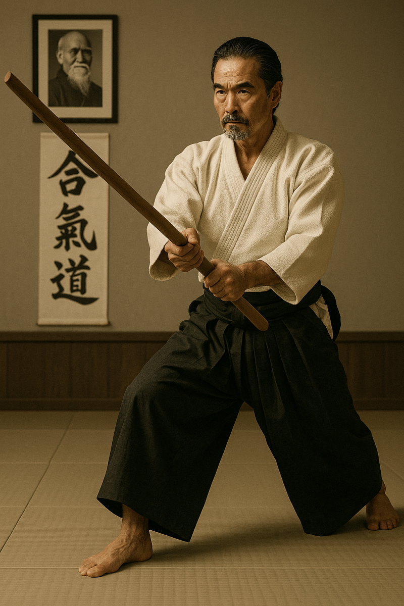 - Intégration des armes dans la philosophie de l'aïkido: L'Iwama Ryu, en mettant l'accent sur le Takemusu Aiki, vise à intégrer harmonieusement les arts martiaux avec et sans armes. Cela reflète la vision holistique de Morihei Ueshiba, le fondateur de l'aïkido, qui prônait l'idée que les techniques avec armes et sans armes étaient complémentaires.